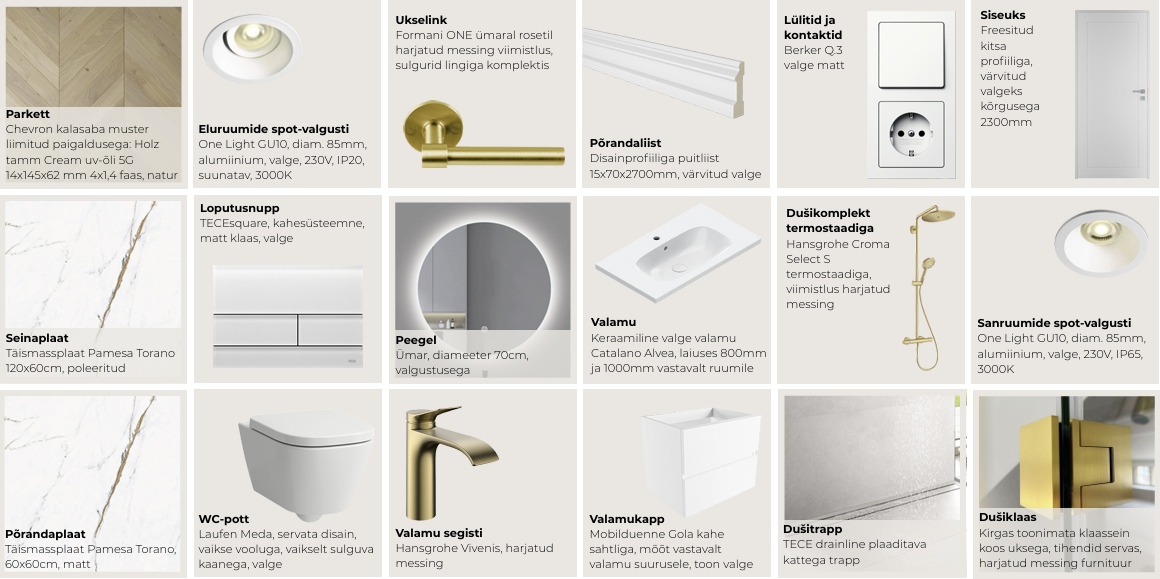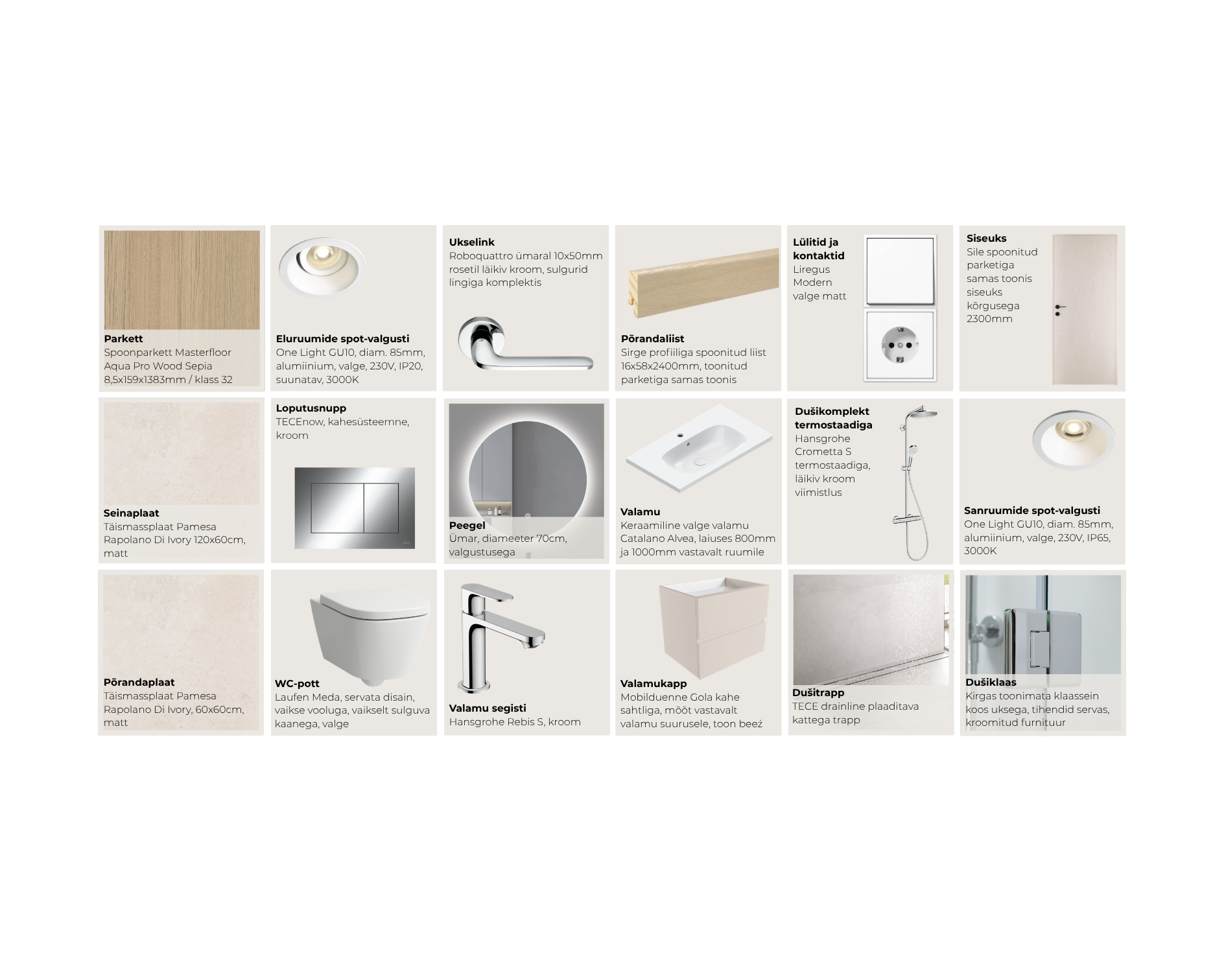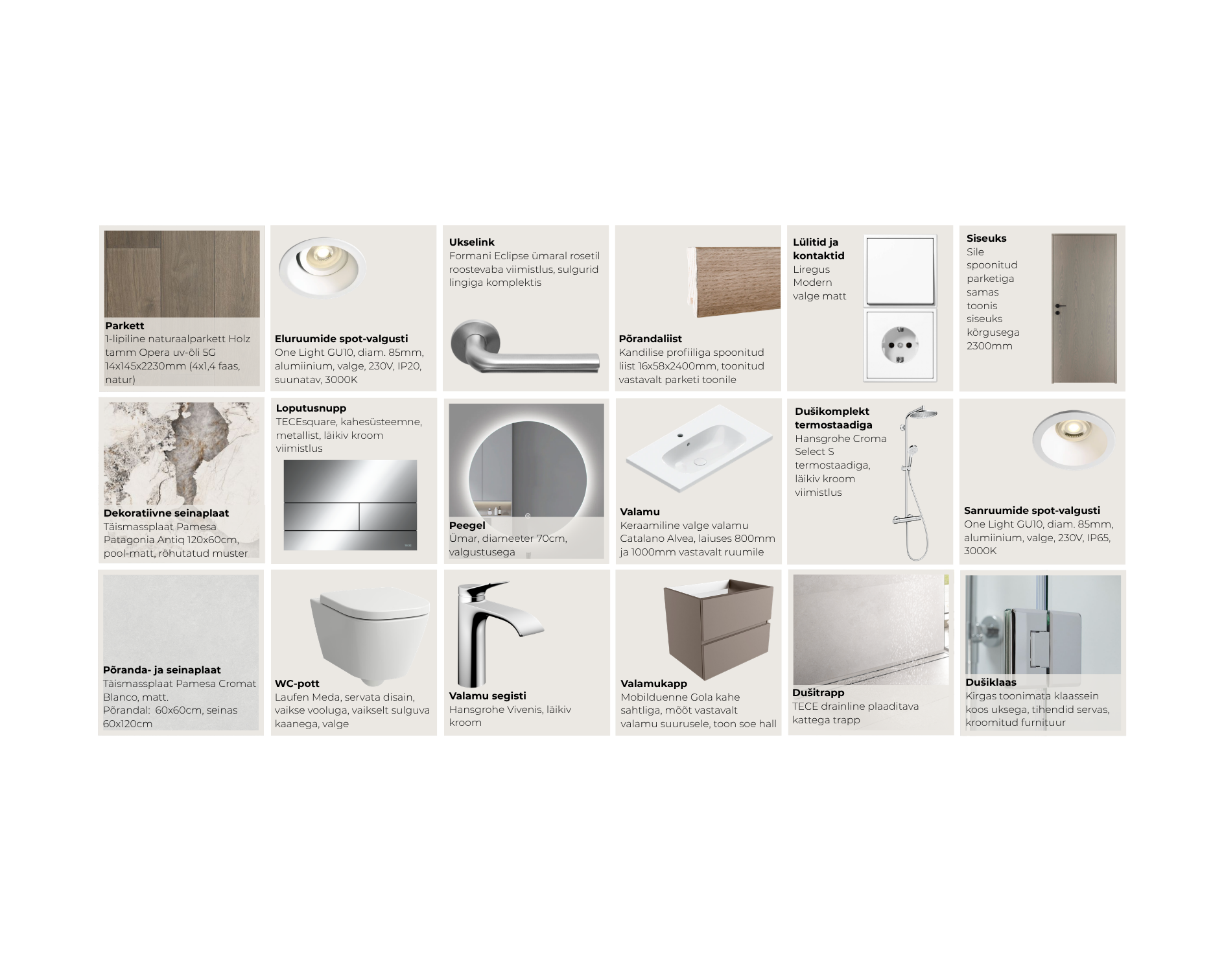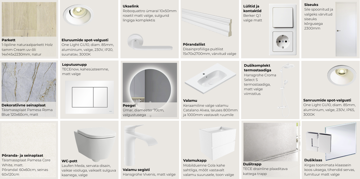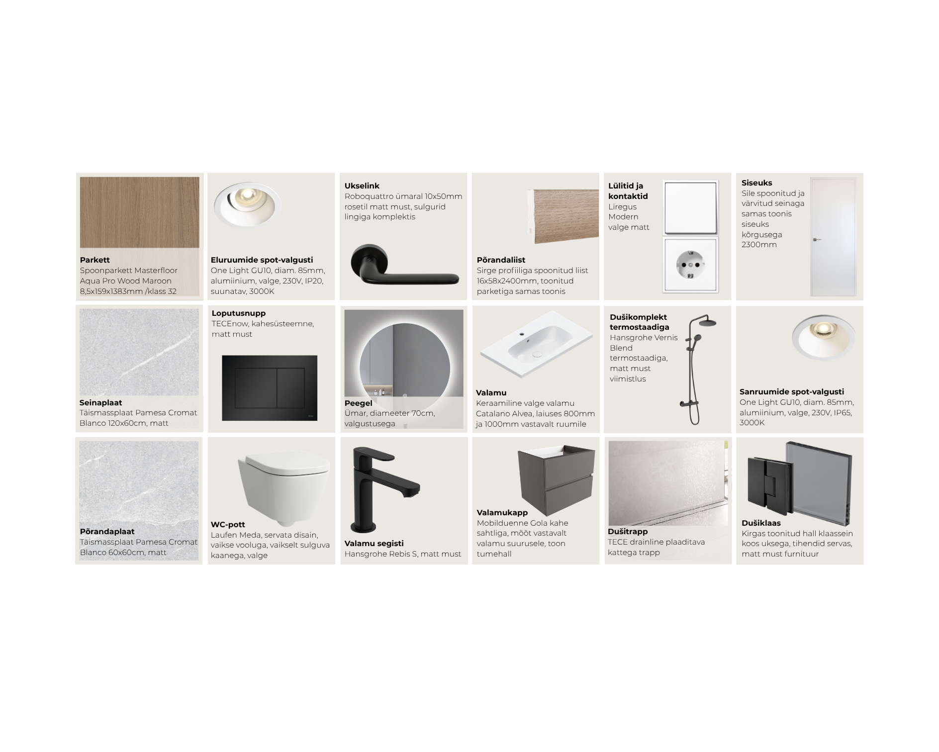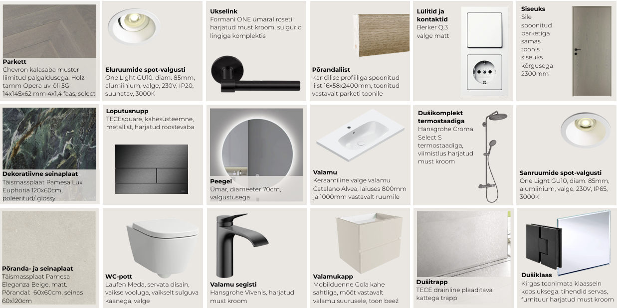 3D-visuaalid ja kollaažidel kuvatavad tootefotod on illustratiivsed ja võivad reaalsest tulemusest erineda. Siseviimistluse valikutest, plaatimisjoonistest ja korteri juurde käivast detailsemast infost vahetuma ülevaate saamiseks soovitame müügijuhiga kokkuleppel näidiste ja muu infoga tutvuma tulla.